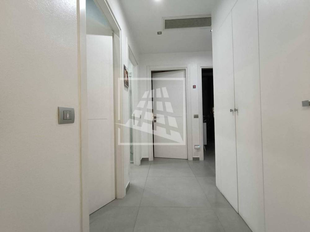L'immobile è composto da sala con cucina open space, balcone, disimpegno con armadiature per lavatrice e asciugatrice, tre camere da letto, due bagni finestrati.
