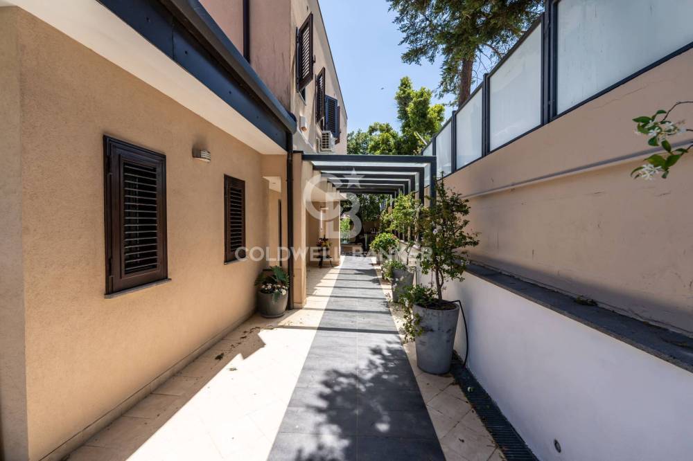 La villa si sviluppa su due livelli, con una superficie totale di 180 metri quadrati e una superficie calpestabile di 150 metri quadrati.