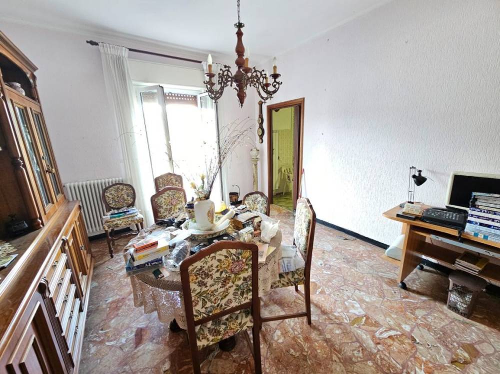 Pontedecimo, San Cipriano, Via D. Carli, in piccola palazzina sprovvista di ascensore, proponiamo in vendita un immobile di 7 vani per una metratura di 126 mq, al 2° ed ultimo piano composto da: ingresso con ripostiglio, sala, 2 camere matrimoniali di grande metratura, camera singola ampia, cucina abitabile, bagno e disimpegno. L'appartamento dispone di due bellissime balconate su cui affacciano gran parte delle stanze; una di queste (quella della sala e cucina) è panoramica su tutta la Valpolcevera. Dispone, inoltre, di una bellissima mansarda finestrata con bagno, accatastata ad uso soffitta, proprio al piano superiore dell'appartamento che il precedente proprietario utilizzava come studio. Completano la proprietà una cantina finestrata al piano fondi e un posto auto di proprietà nel garage condominiale. Richiesta Euro 130.000 -- E' possibile acquistare separatamente uno o più box al piano fondi ad Euro 25.000 cadauno.