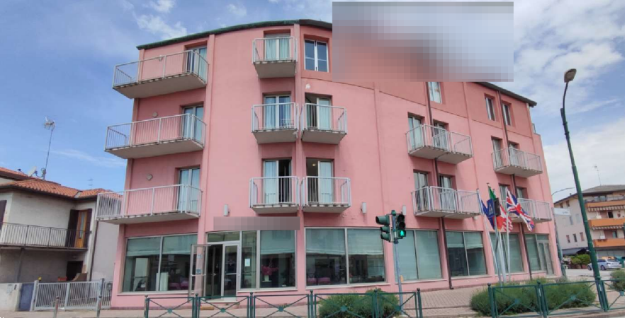 Trattasi di un hotel composto da piano terra: con una hall, di un bar e di una sala ristorazione, dotata di ampie vetrate. I locali ai piani primo- secondo- terzo ai piani superiori sono presenti le camere da letto per gli ospiti, del tipo