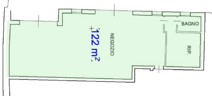 Trattasi di un negozio al piano terra costituito da un unico locale con due vetrine due finestre su un lato, oltre a ripostiglio e bagno finestrato.