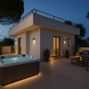 Il giardino privato, esteso su 500 metri quadri, abbraccia la villa con la sua bellezza naturale, offrendo spazi verdi ben curati e aree per attività all'aperto. Qui potrete organizzare cene all'aperto, feste in giardino o semplicemente rilassarvi nella quiete della natura circostante.