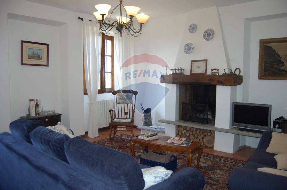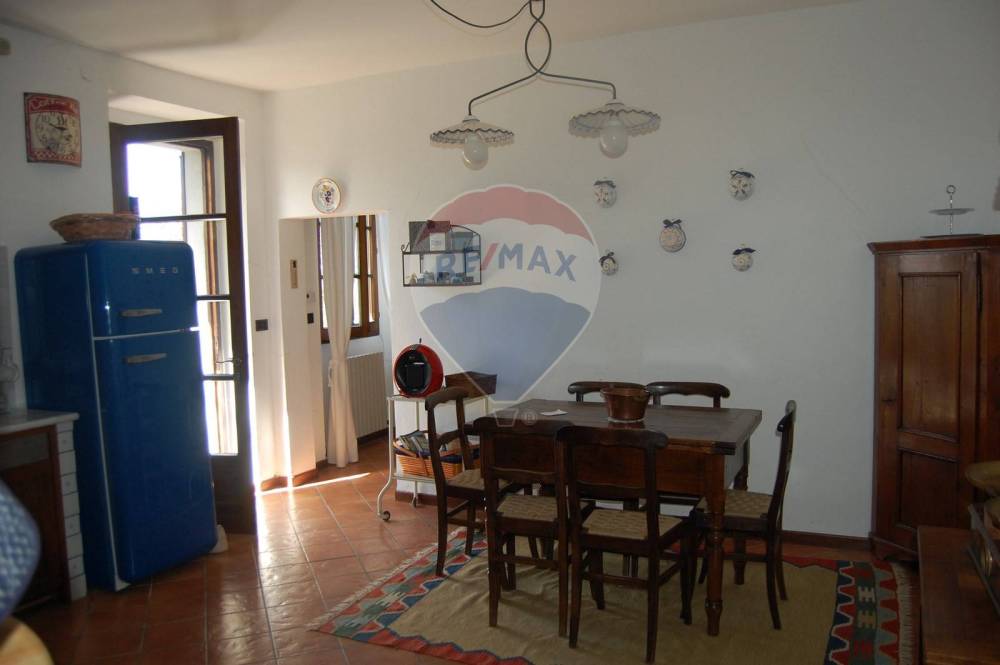 Dal secondo ingresso si accede alla cucina abitabile, sul lato sinistro soggiorno con camino. Al piano superiore due camere da letto e un bagno finestrato con doccia.