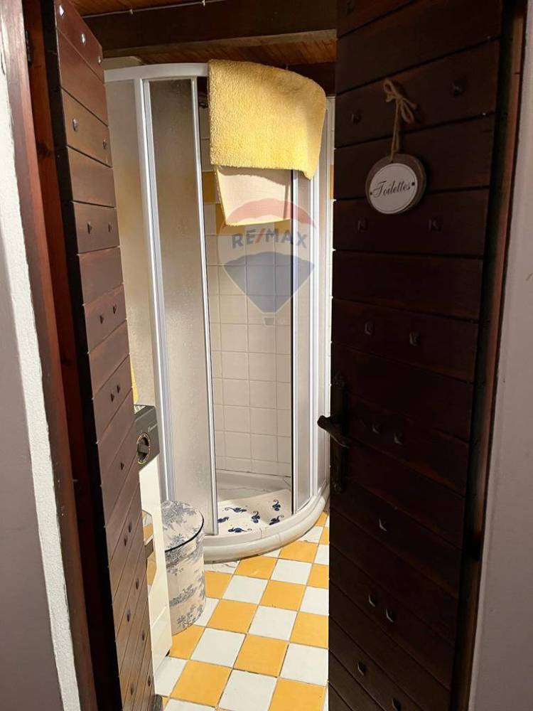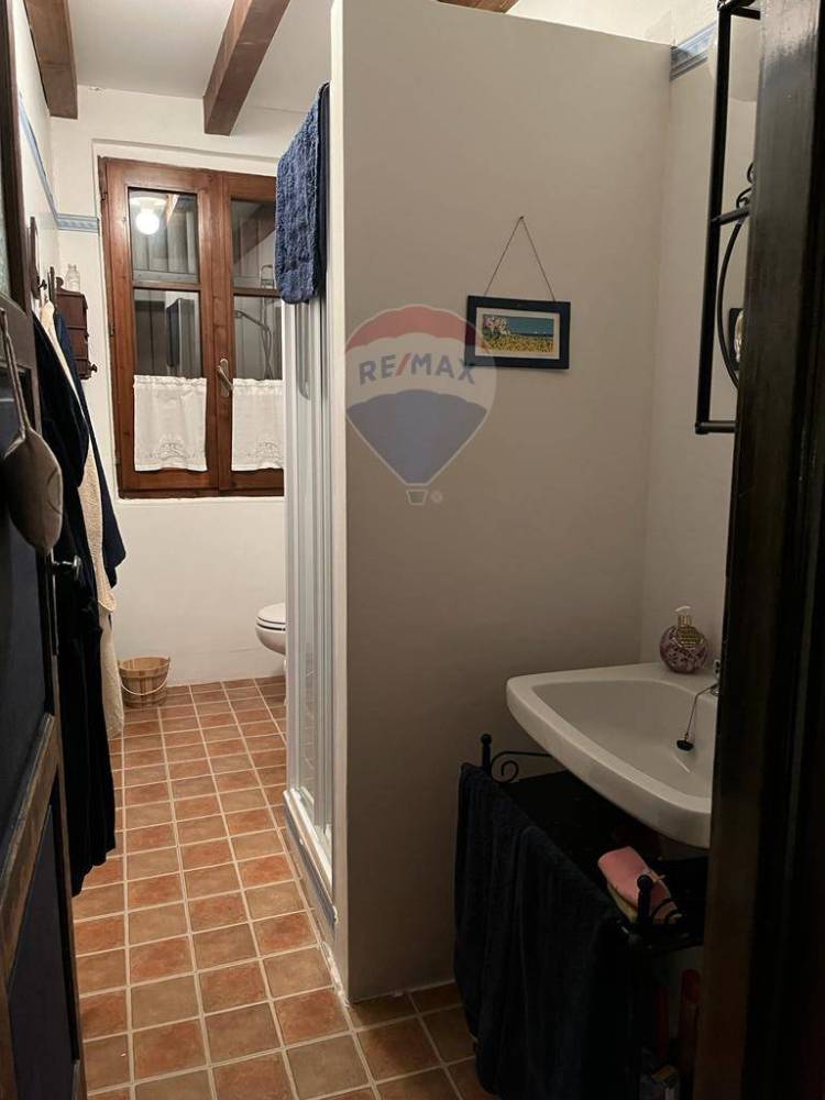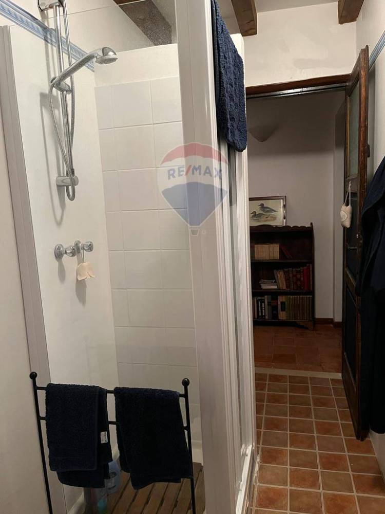Dal primo ingresso si accede al disimpegno, sul lato destro è presente un bagno finestrato con doccia, una scala porta al piano superiore con accesso alla camera da letto.