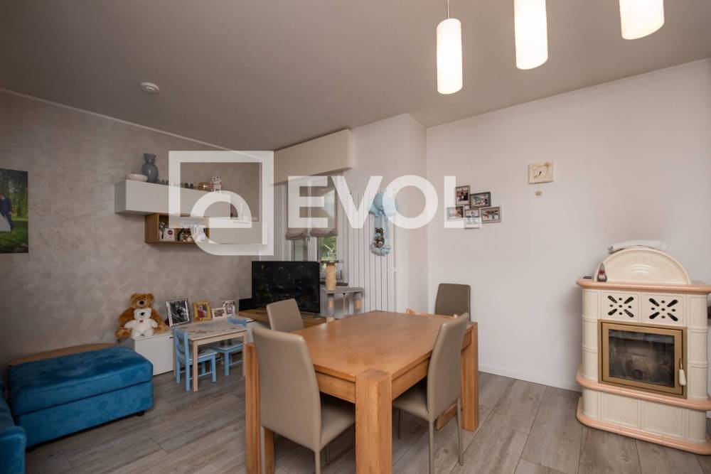 La cucina e la sala da pranzo costituiscono un unico ambiente, luminoso, giovane e con spazi molto generosi in cui trova spazio anche una caratteristica stufa a pellet per assicurare un riscaldamento supplementare per le fredde giornate invernali. La cucina è dotata di arredamento su misura moderno con piano cottura ad induzione. Un utile ripostiglio completa la zona giorno.