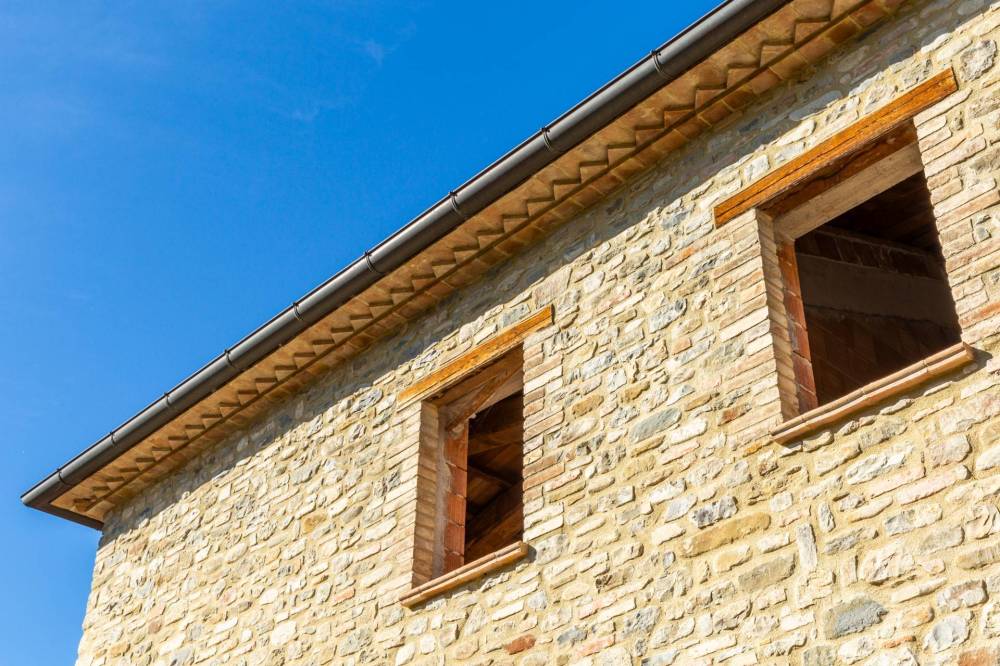 I due edifici, costruiti ex novo recuperando la volumetria di antiche strutture rurali, rappresentano una perfetta fusione tra tradizione e modernità. La solida struttura in cemento armato antisismico, il rivestimento in pietra locale e mattoni antichi, lefficiente sistema di isolamento termico e i soffitti alti con travi in castagno a vista conferiscono a questo complesso un fascino autentico e una qualità costruttiva rara sul mercato.