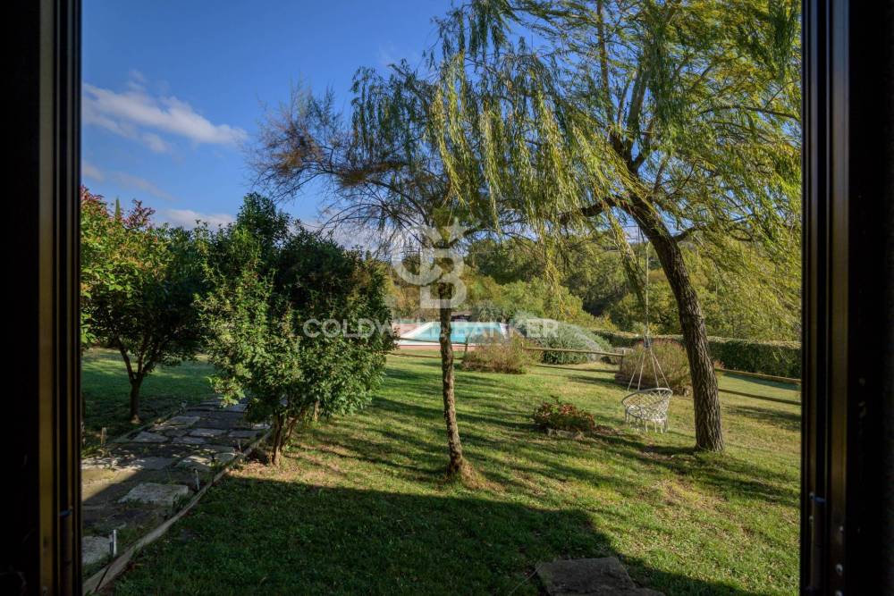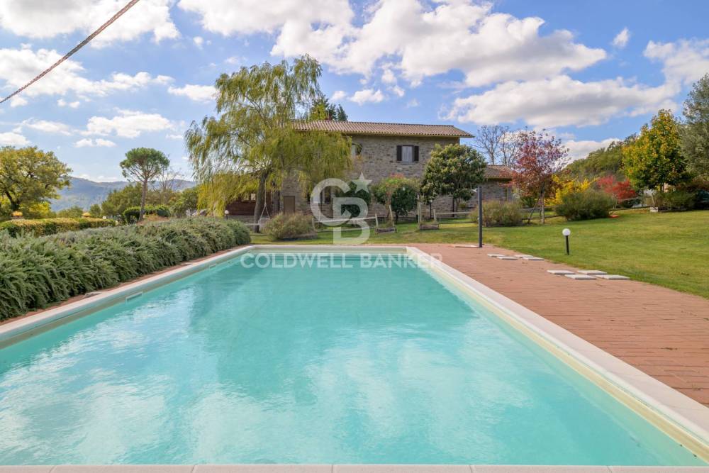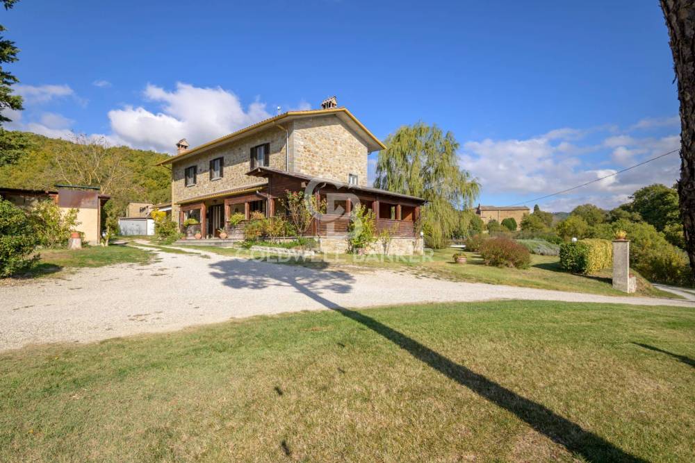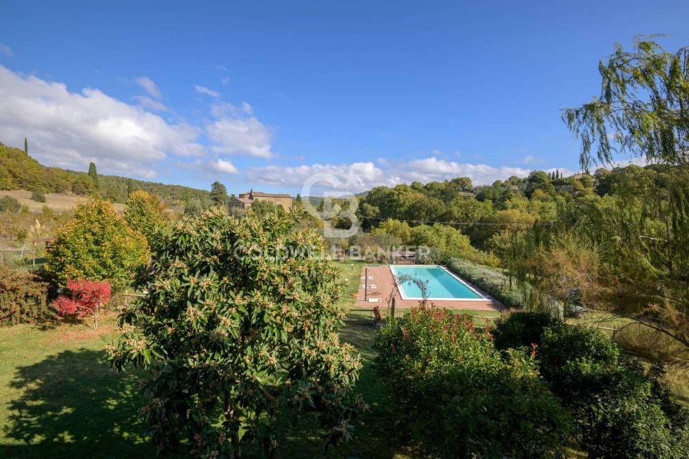 La proprietà è circondata da un parco di 90.000 mq; la piscina panoramica offre uno spazio ideale per rilassarsi, godendo della vista sulle colline umbre e toscane. A corredo della proprietà,è presente una bellissima tartufaia con ben 500 piante di noccioli, ed un ettaro di oliveto con 90 piante.