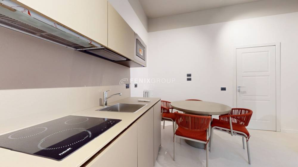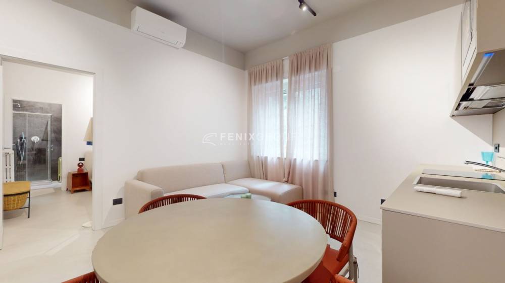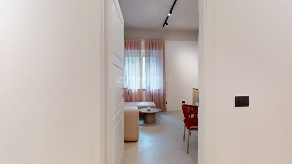 L’appartamento, recentemente ristrutturato a nuovo, si apre su un luminoso soggiorno con cucina a vista dal design moderno e funzionale. La zona notte è composta da una spaziosa camera da letto con porta finestra che conduce a un balcone, offrendo uno spazio esterno riservato e piacevole. Il bagno, finestrato e completo di doccia, presenta finiture eleganti e di ottima qualità.