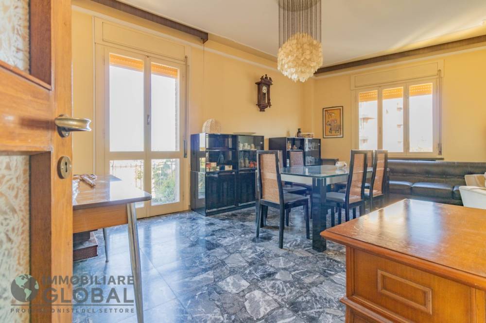 L’ingresso si apre su un grande disimpegno che conduce alla sala da pranzo con cucinotto separato e ad un ampio soggiorno.