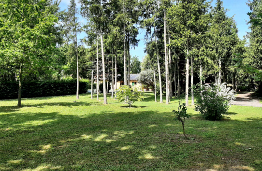 Edificio che si trova all'interno di un grande parco nel quale è presente una folta vegetazione costituita da numerose tipologie di alberi e piante e dove è stato ricavato un grande specchio d'acqua. Unità sviluppata su due livelli di piano direttamente accessibile dalla corte e da un monolocale accessibile da un vano scale comune con entrata dal lato lungo dell'edificio. È ricompreso nel lotto uno stabile accessorio al cui interno sono presenti un'autorimessa ed alcuni locali ad uso deposito e servizi in adiacenza del quale è stata edificata una piscina. Sulla superficie del parco insistono inoltre un piccolo stabile in prossimità del laghetto ad uso deposito attrezzature ed una serra utilizzata per il ricovero di attrezzi da giardino.