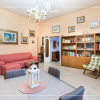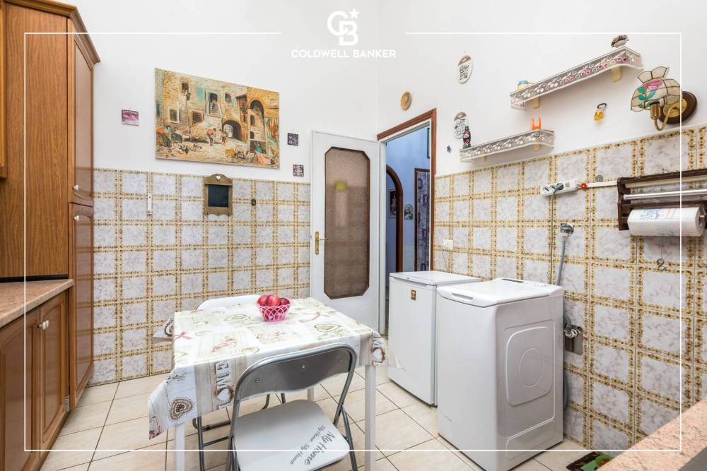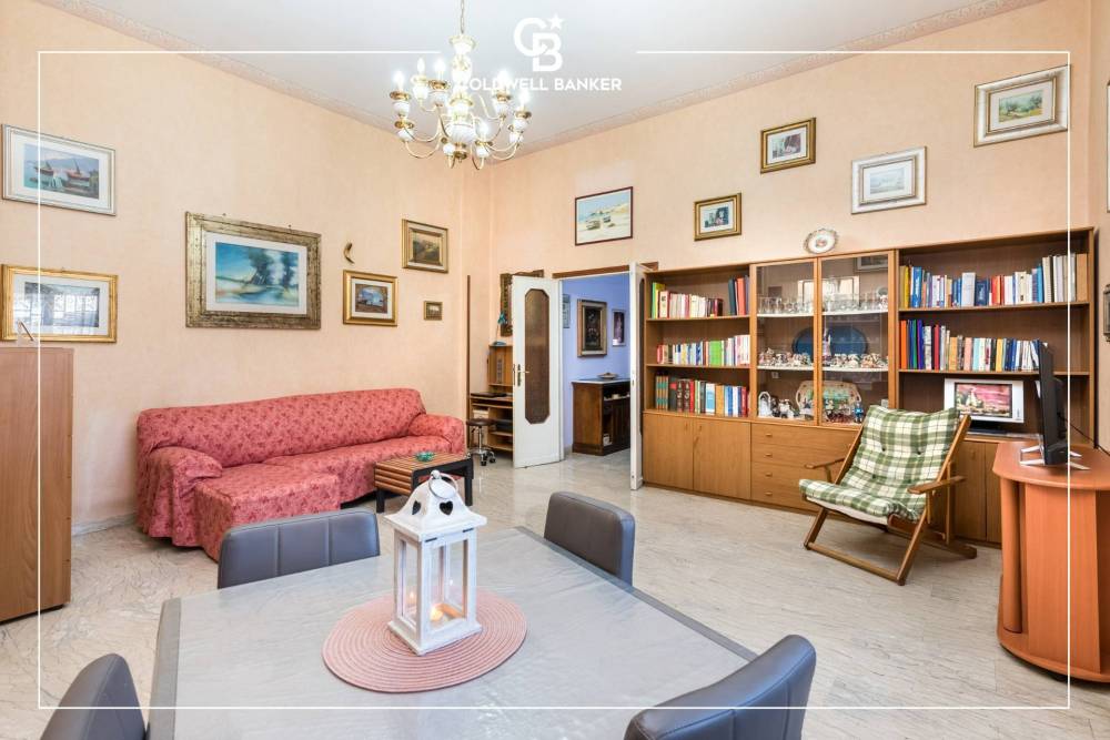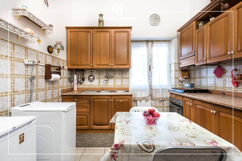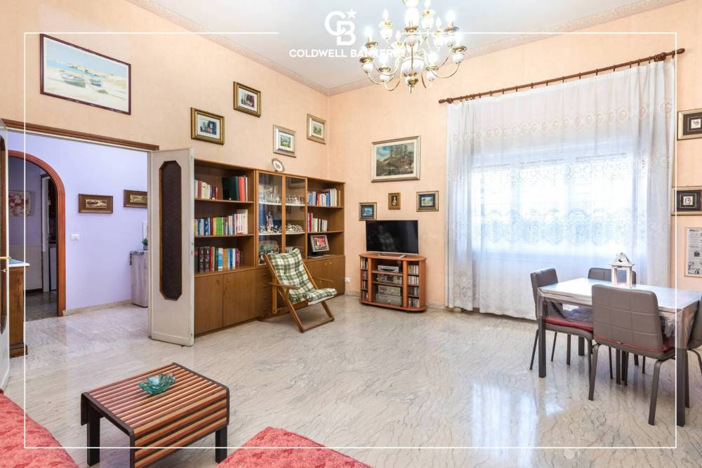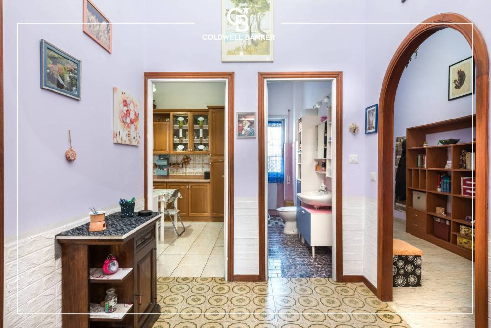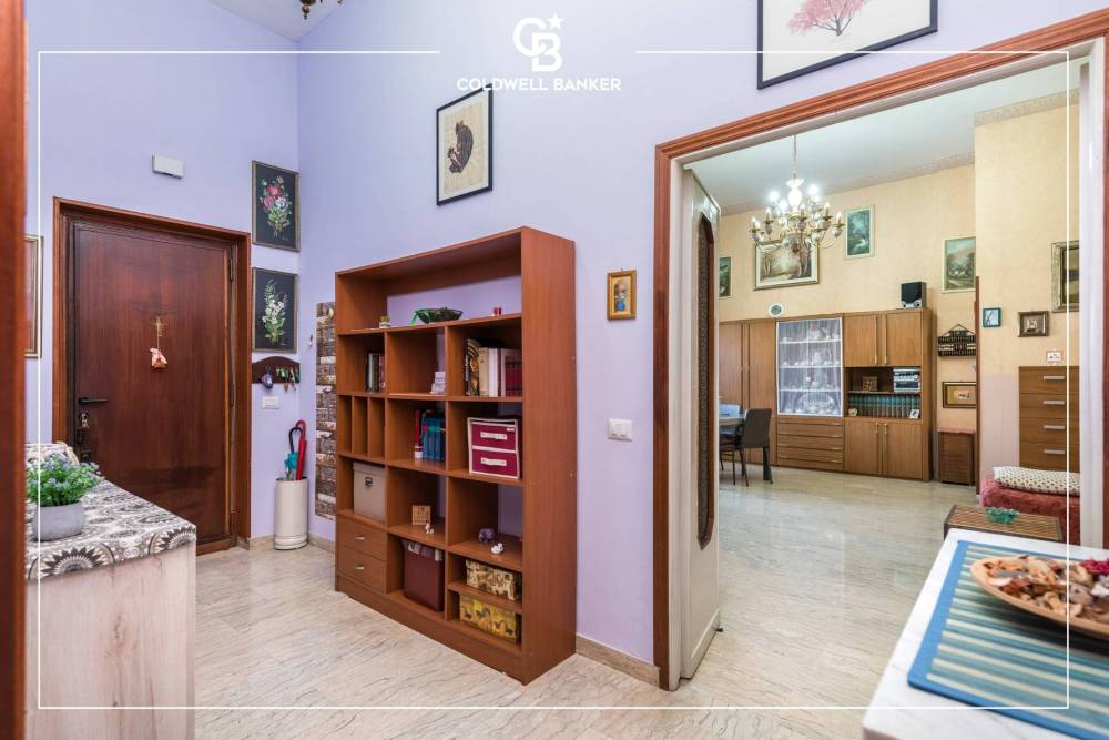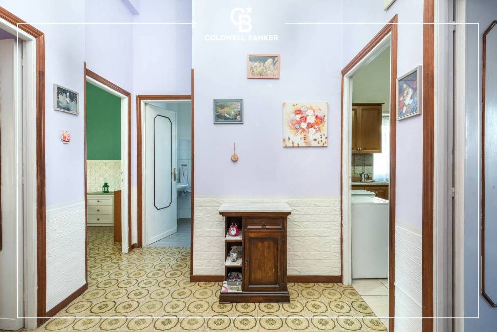 L'appartamento è disposto su un unico livello; gli spazi interni risultano comodi e ben distribuiti, tipici dell'epoca di costruzione, presentano un pratico ingresso che conduce sulla sinistra ad un ampio salone ben illuminato con affaccio al giardino di ingresso mentre invece sulla destra si accede ad un arioso disimpegno verso la cucina abitabile, un ripostiglio, la camera matrimoniale, una camera doppia capace di ospitare due ragazzi ed i due servizi entrambi finestrati.