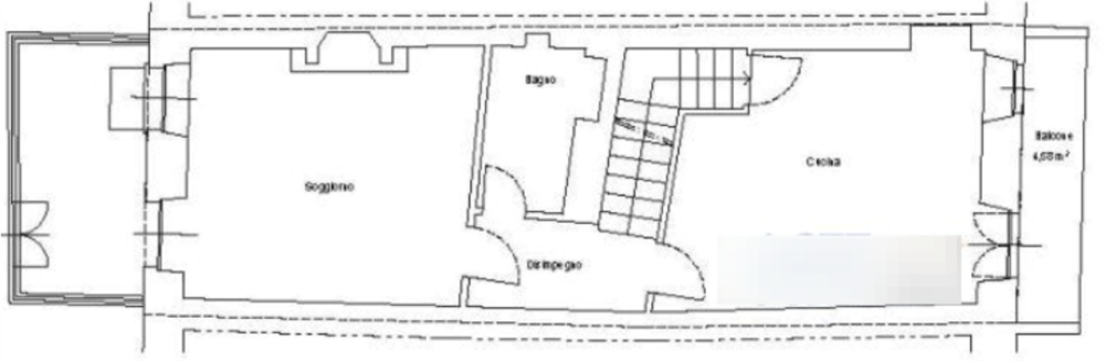 Trattasi di una casa composta da piano terreno si compone di ingresso-soggiorno, vano scala, disimpegno, bagno e cucina con balcone su cortile. Dall'ingresso si accede direttamente nel soggiorno. Al piano primo troviamo disimpegno, due camere da letto, bagno, vano scala, balcone su strada e su cortile, il piano sottotetto è presente ampio locale mansardato con bagno.