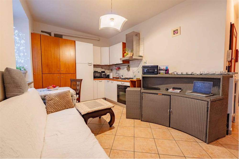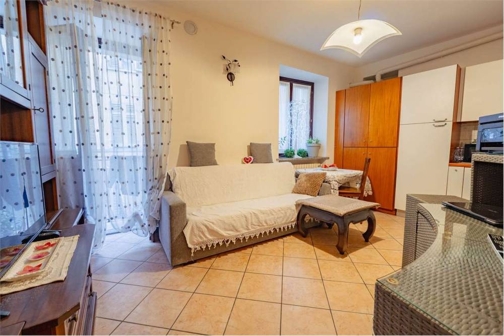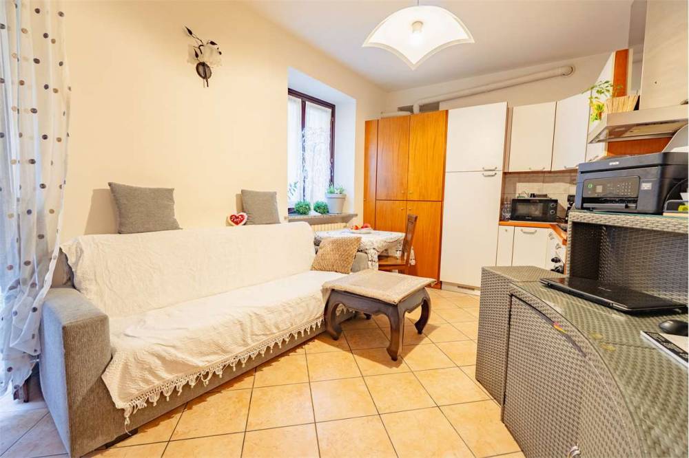 L'ingresso si apre su un soggiorno con angolo cottura che gode della presenza di una canna fumaria, perfetta per installare una stufa a pellet oltre al riscaldamento autonomo a metano con termosifoni in ghisa. Completano la proprietà una camera matrimoniale, un bagno e due balconcini affacciati sulla via principale. Gli infissi sono in legno con doppio vetro e garantiscono un buon isolamento.