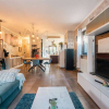 L'ingresso conduce a un'ampia e luminosa zona giorno con cucina a vista e soggiorno, un ambiente ideale sia per i momenti conviviali che per il relax quotidiano. La zona notte comprende due camere da letto e due bagni: uno con finestra e vasca, l'altro collegato alla camera matrimoniale e dotato di doccia.