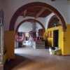 Ambiente caratteristico con soffitti alti, travicelli a vista e archi con mattoni a vista