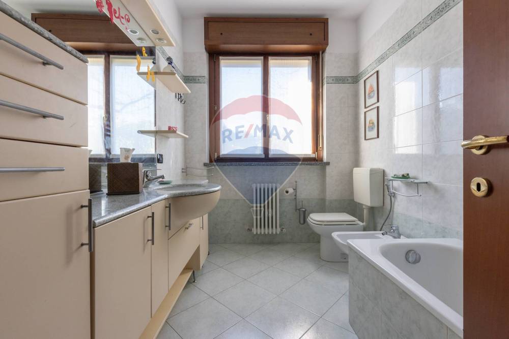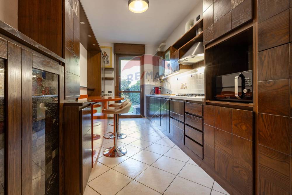 Limmobile, in ottimo stato di conservazione, offre una superficie di 107 mq sapientemente distribuita: ingresso, ampio soggiorno con grande vetrata e accesso diretto al giardino privato, cucina separata, ripostiglio, un'ampia camera matrimoniale con grande cabina armadio, cameretta di metrature generose e doppi servizi uno con doccia e l'altro con vasca da bagno.
