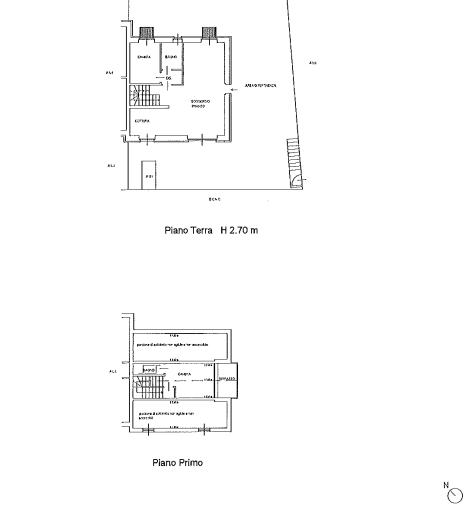 L'alloggio è composto da una cantina, lavanderia, due ripostigli e disimpegno al piano interrato; cucina-soggiorno, bagno, disimpegno, una camera e circostante area esterna di proprietà esclusiva, al piano terra; camera, bagno, terrazzo e sottotetto, al piano primo.