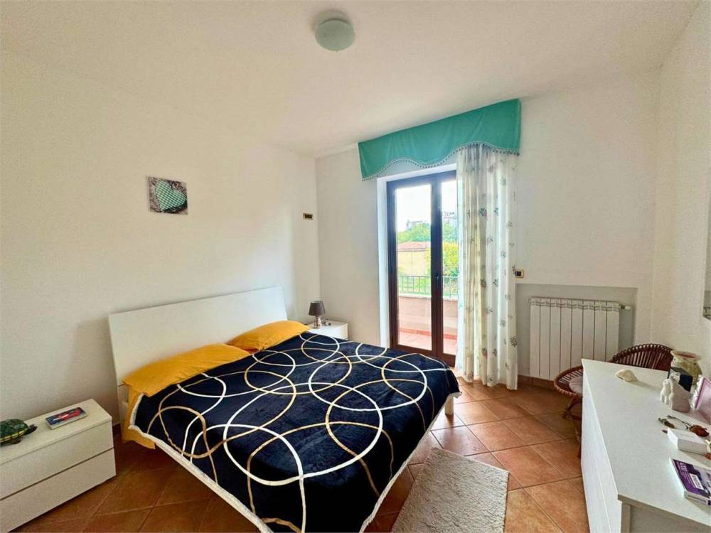 L'abitazione si distingue per la distribuzione funzionale degli spazi e per la splendida vista panoramica che domina il paesaggio circostante e il mare. È composta da un grande salone, ampia cucina abitabile, due camere da letto e due bagni moderni e finemente rifiniti.