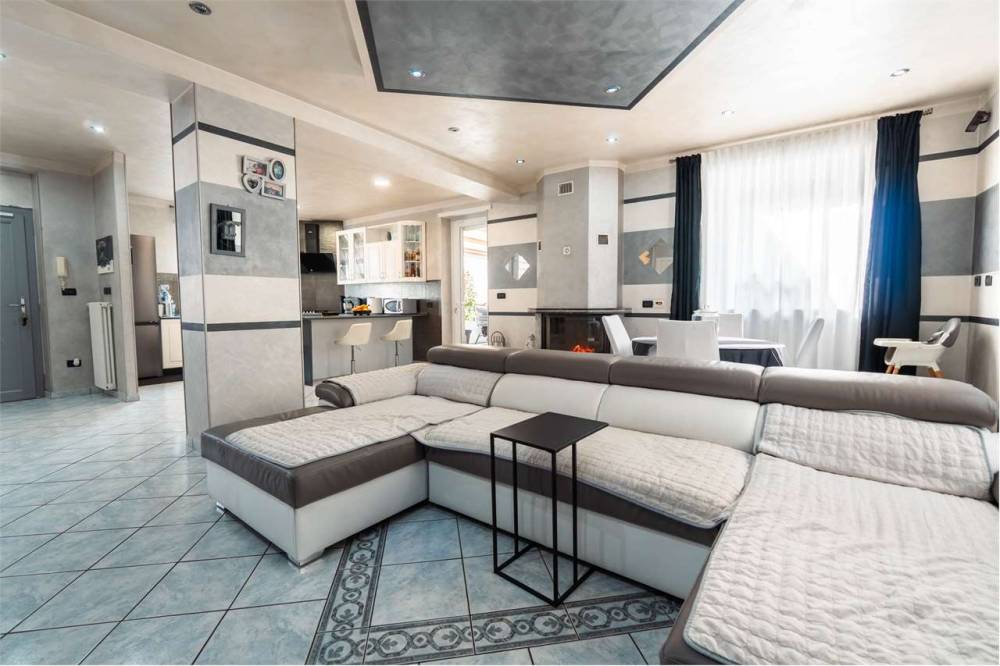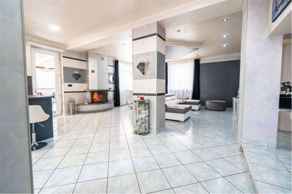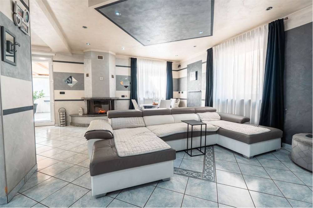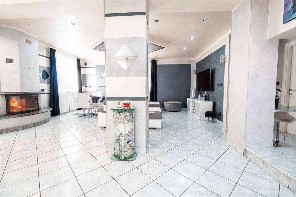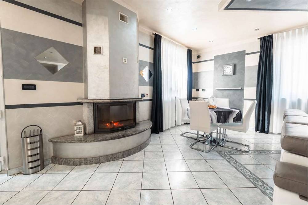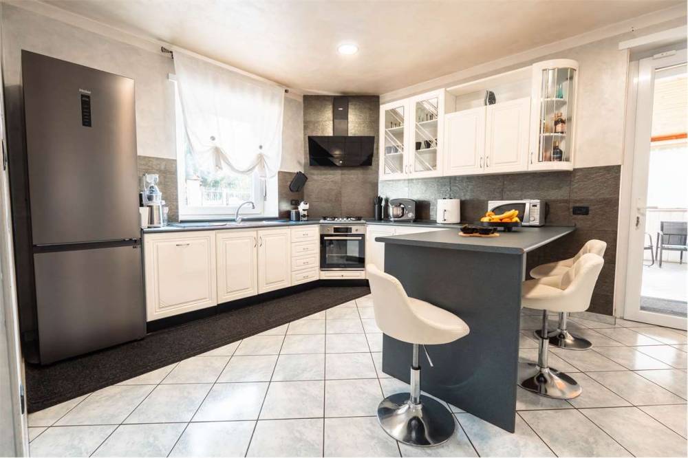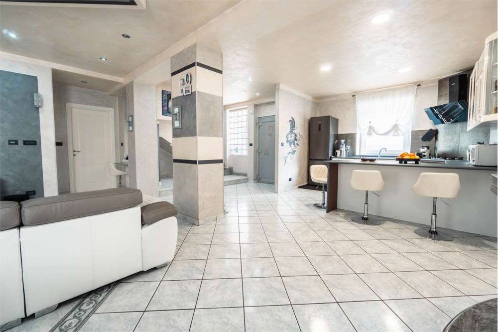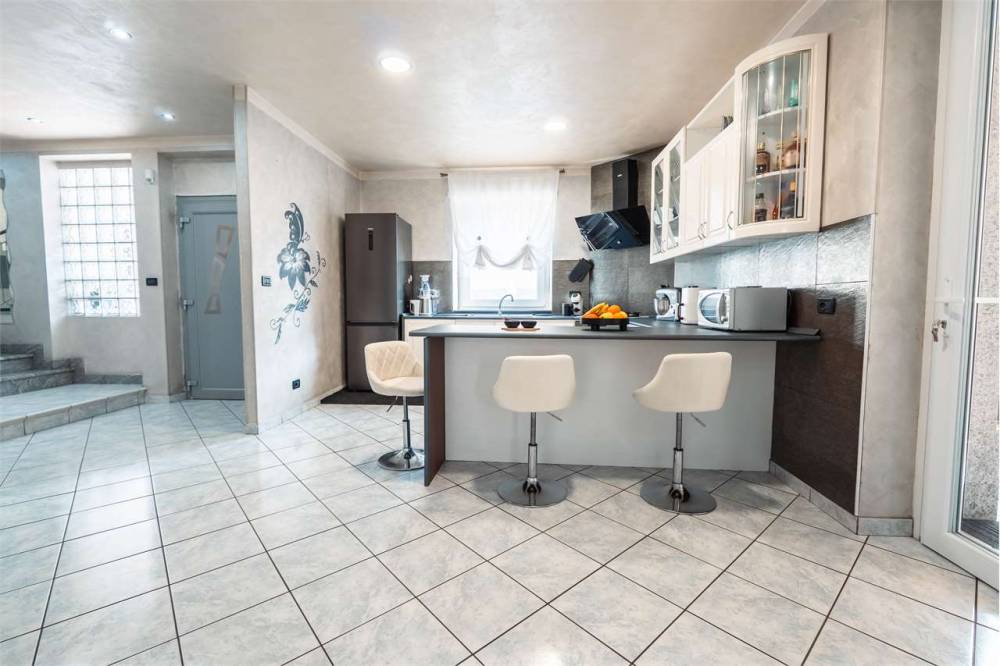 Al piano terra l'ingresso si apre su un ampio e luminoso salone con caminetto, ambiente elegante e accogliente ideale per momenti in famiglia o con amici, collegato alla cucina abitabile con penisola, moderna e funzionale. Sullo stesso piano è presente un bagno dalle generose dimensioni, dotato di un'ampia vasca.