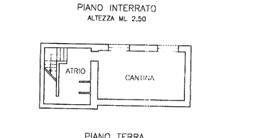 Il Piano seminterrato con atrio con sottoscala ed una cantina a uso taverna.