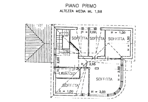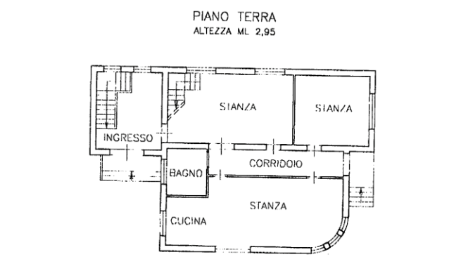 Trattasi di una villa con corte, è composta da ingresso, servito da scala esterna con pianerottolo, in cui è presente la scala a servizio del piano seminterrato; soggiorno, direttamente accessibile dall'ingresso, ove è presente una scala per l'accesso al primo piano; disimpegno accessibile anche dall'esterno con una propria scala e pianerottolo; stanza, pranzo con zona cucina e bagno.