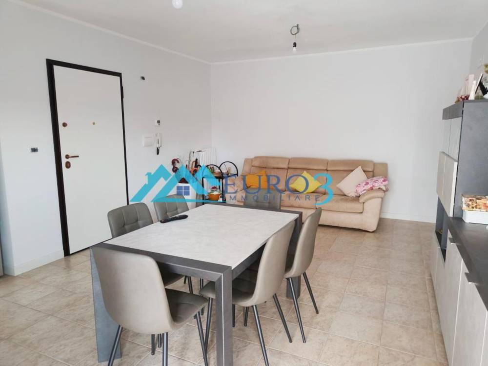 L'appartamento internamente misura circa 105 mq, ed è suddiviso in ingresso su ampio soggiorno con angolo cottura, disimpegno, 2 camere, bagno con finestra.
