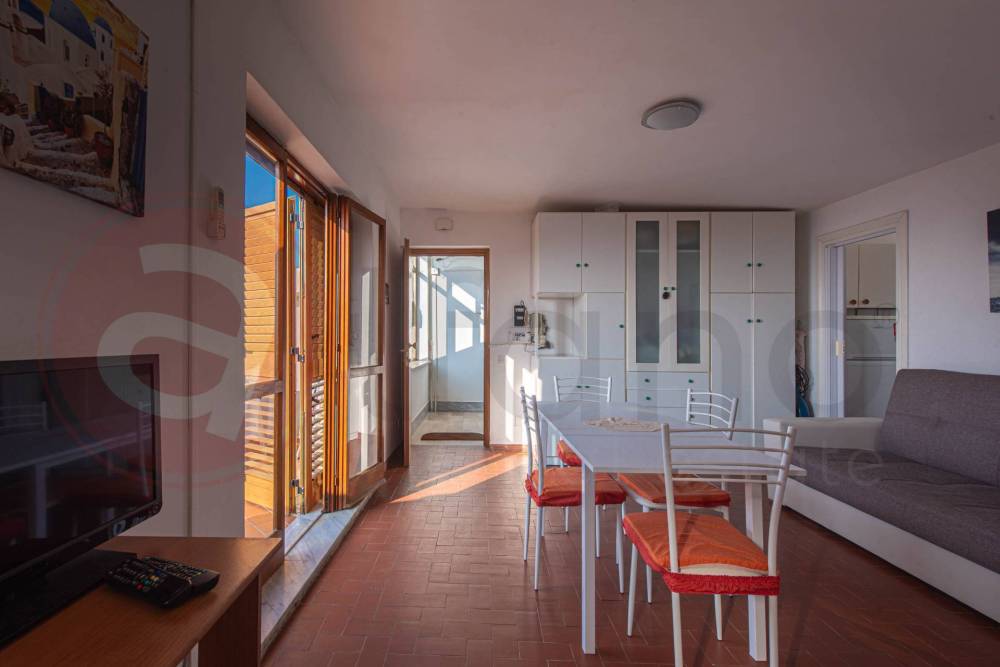 Grazie all'esposizione panoramica, dal terrazzo è possibile ammirare anche il centro storico, creando un unicità visiva che alterna la vista mare a quella storica. Viene venduto completo di arredi presenti all'interno.