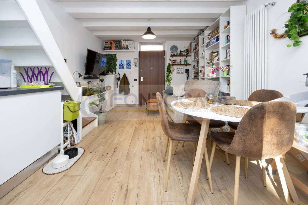 Bilocale di 53mq, distribuito su due livelli e rinnovato nel 2021, composto da ingresso diretto su zona giorno con angolo cottura, avente accesso ad un bellissimo GIARDINO PRIVATO di 20mq al piano terra e da una camera da letto ed un bagno finestrato al primo piano, accessibile tramite scala interna.