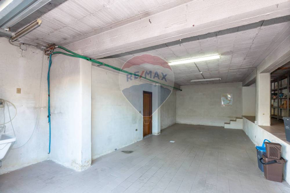 Ingresso principale, scala interna, grande cantina/box auto e spazi accessori ideali come deposito o area hobby.