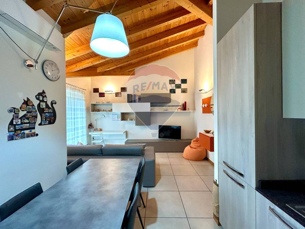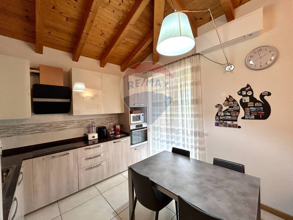 Le travi in legno a vista donano calore e carattere, mentre i serramenti in PVC con doppi vetri assicurano isolamento termico e acustico. A completare il comfort: portoncino blindato, videocitofono, porte interne Serport, predisposizione dellimpianto di condizionamento e riscaldamento a pavimento con tre termostati indipendenti per una gestione efficiente della temperatura.