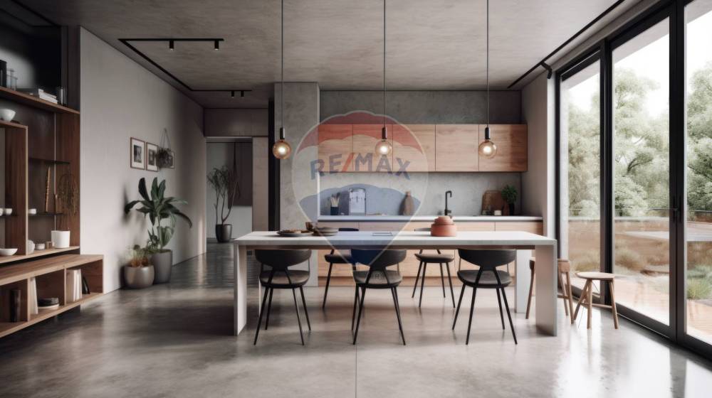 Soggiorno di 29,5 mq, cucina di 13,7 mq, lavanderia di 3,9 mq, disimpegno di 2,8 mq, locale tecnico di 9 mq, autorimessa di 16,5 mq, due porticati di 6 mt ciascuno.