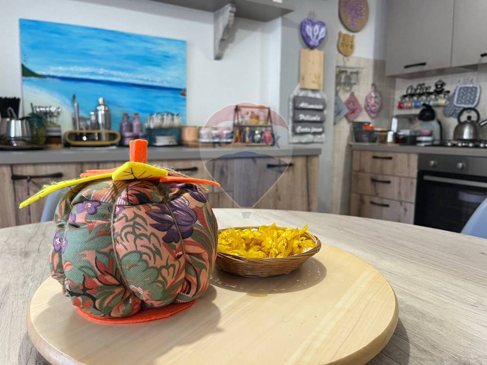 L'abitazione, di 83mq, è composta al primo livello da un'ampia camera da letto con balconcino, un bagno con doccia e sanitari sospesi, un comodo ripostiglio, una bellissima cucina a vista dotata di tutti i comfort con sala da pranzo e camino, da cui si accede ad un grazioso terrazzino. Tramite una comoda scala a chiocciola si sale al secondo livello, composto da un salottino, una grande camera da letto, un bagno con doccia e sanitari sospesi e una parte ad uso "soffitta".