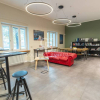 Al piano rialzato, con doppio accesso sia direttamente dalla strada con ingresso indipendente e sia dal pianerottolo condominiale, si apre una grande hall di ingresso con reception e zona attesa, un piacevole angolo bar o area relax, due uffici e un ampio bagno.