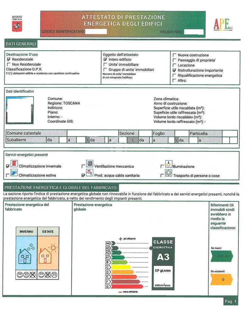 (riscaldamento a pavimento con pompa di calore, impianto di climatizzazione e di pannelli fotovoltaici 3,2 KW, infissi in PVC ad alto isolamento termico e acustico dotati di microventilazione).