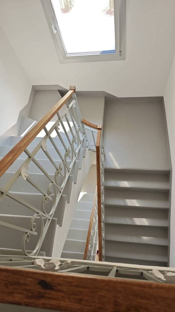 Scala interna di design che conduce ad unincantevole altana, perfetta come stanza aggiuntiva o studio