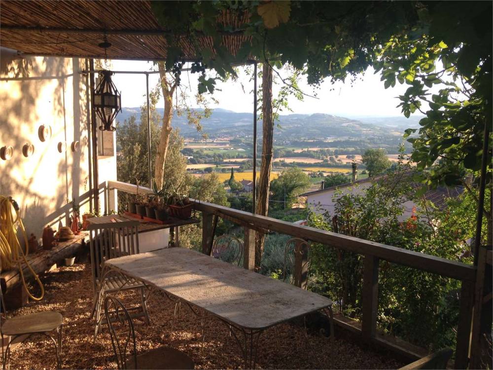 Il piano terra ospita un cucinotto ed un luminoso soggiorno con camino ed accesso al giardino, mentre al piano primo sono presenti 3 spaziose camere da letto con vista panoramica ed un terrazzo.