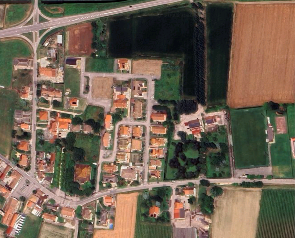 Terreno edificabile urbanizzato di superficie 797 metri quadri e sovrastante fabbricato abusivo destinato a magazzino-tettoia situato a Correzzola (PD), località Concadalbero in via Arnaldo Abate. Il terreno è situato in una recente lottizzazione a prevalente destinazione residenziale.
