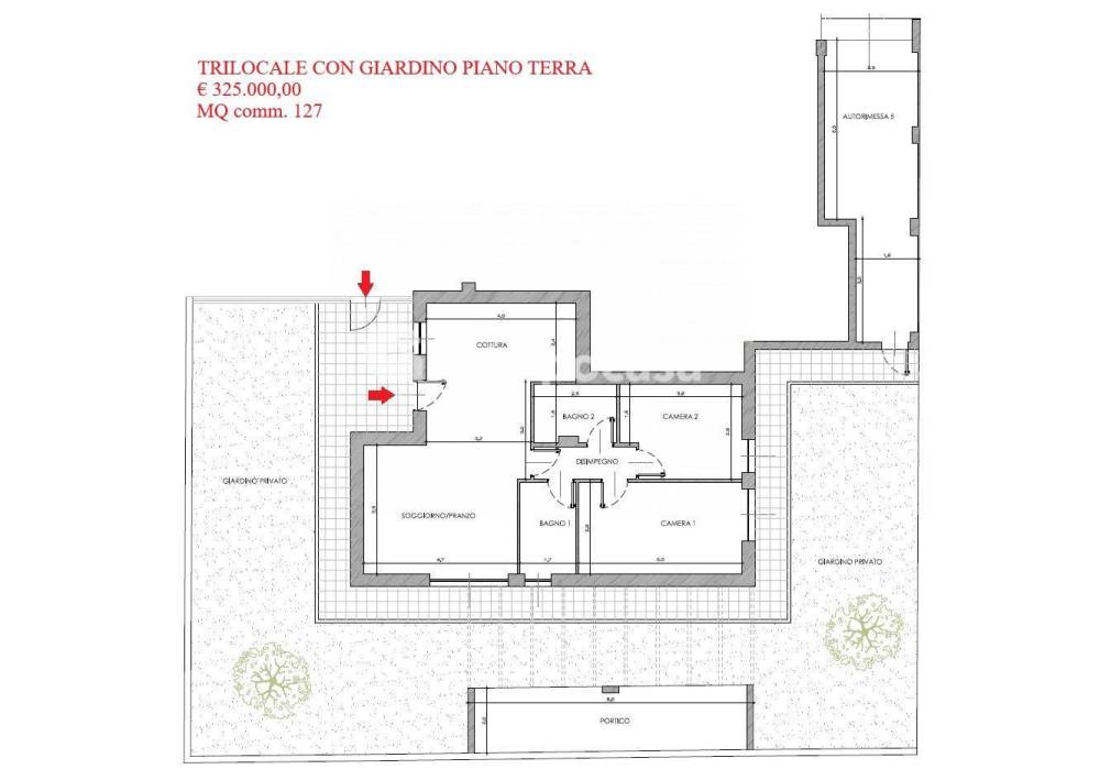 Appartamento posto al piano terra di TRE LOCALI con cucina, doppi servizi e giardino privato.