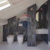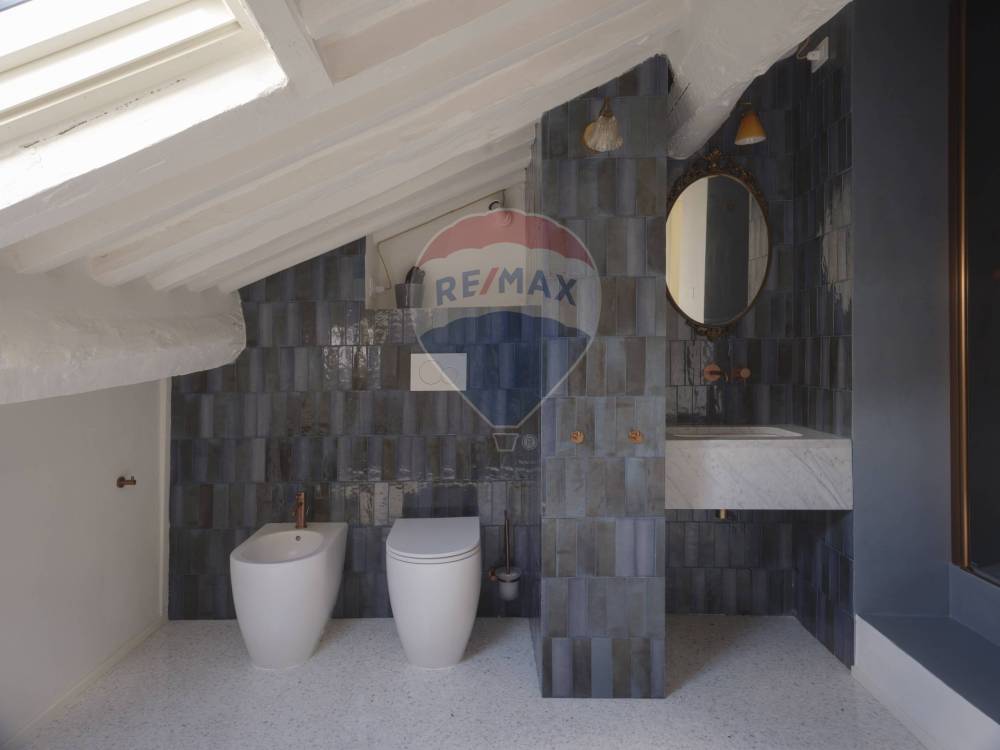 Tutti gli spazi sono valorizzati e ben sfruttati; il soggiorno è accogliente, con un grande divano che può diventare il terzo letto matrimoniale, e spazio per pranzi in compagnia, la cucina è arredata con mobili su misura che nascondono anche la lavatrice e una dispensa capiente, spazioso anche il ripostiglio e le due camere matrimoniali. Il bagno merita una particolare attenzione, resine preziose lo rendono attuale pur integrandosi bene in un edificio antico; ora cè una grande doccia ma esiste la predisposizione per aggiungere una vasca free-standing