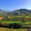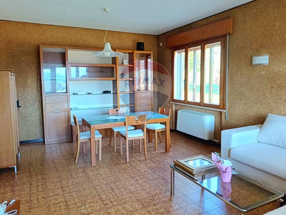 La villa si sviluppa su due livelli. Al piano principale, dove si trova la zona residenziale, si accede tramite un ampio ingresso che conduce a un luminoso e accogliente soggiorno-salotto, arricchito da ampie vetrate su due lati che permettono alla luce naturale di inondare lambiente. Un terrazzo privato, affacciato sul centro di Follina, rende questo spazio ancora più invitante. La cucina, abitabile, condivide con il soggiorno lo stesso terrazzo, creando una continuità tra gli spazi interni e il giardino circostante.