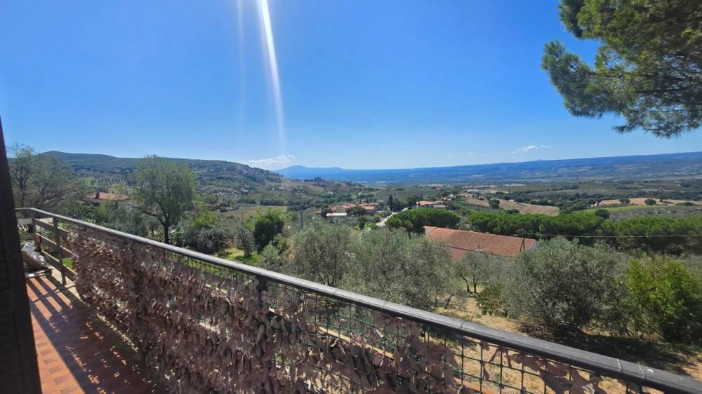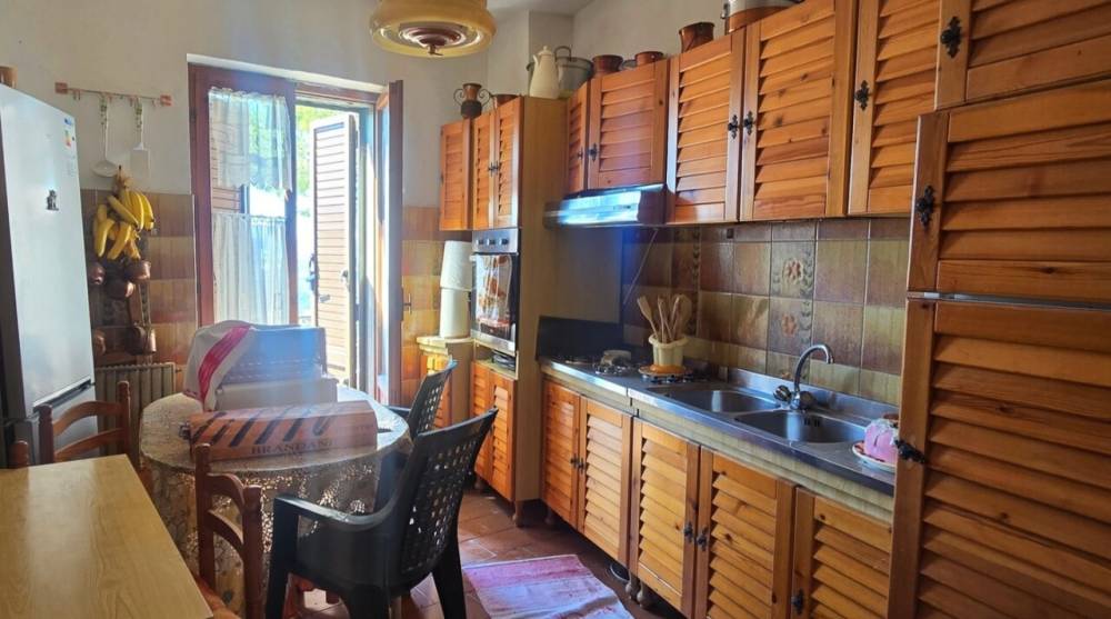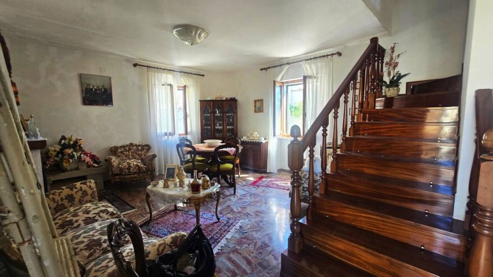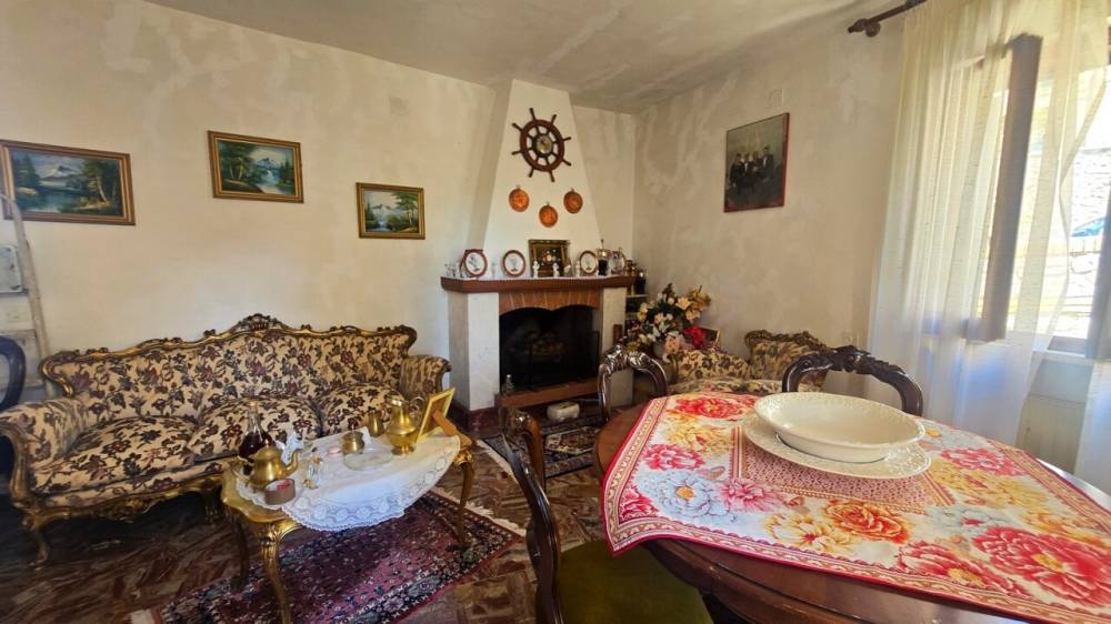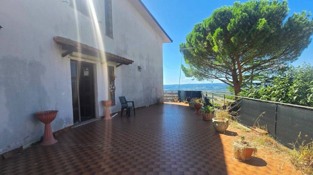 Nell'antico borgo di Montecchio TR proponiamo una casa indipendente con diversi spazi esterni e una splendida vista panoramica Abitazione con terrazzo panoramico La casa si sviluppa attualmente su due piani (132mq) con ingresso dal piano terra attraverso un ampio terrazzo panoramico, soggiorno con camino, bagno e una cameretta/ studio, una cucina attrezzata, entrambi con accesso al terrazzo. Di fronte all'ingresso troviamo una scala in legno che conduce al primo piano dove troviamo tre camere da letto ed un bagno con vasca. Abitabile, da migliorare. Le facciate sono in pietra, attualmente intonacate parzialmente. Piano seminterrato con giardino Al piano inferiore (piano terra/seminterrato) con ingresso indipendente dal vicolo e con la predisposizione per una scala interna, si trovano due locali allo stato grezzo (circa 130 mq) e un locale tecnico, un portico,e uno spazio esterno di 450 mq, in parte pavimentato (da ripristinare) e, ad un livello inferiore, un giardino con ulivi. Questo spazio era originariamente destinato a pizzeria (con forno a legna e attrezzature professionali), ma si adatta a vari usi, ad esempio ad un ufficio/ laboratorio/ o un appartamento indipendente/ o una taverna/ zona giorno con cucina (collegando la scala interna), a seconda delle esigenze. L'altezza del soffitto consente anche la realizzazione di un soppalco.