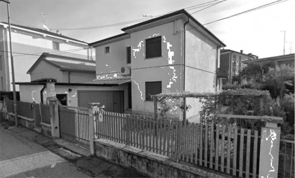Abitazione bifamiliare suddivisa in due unità abitative con ingressi indipendenti ed autorimessa comune con area scoperta di pertinenza situata a San Giovanni Lupatoto (VR) in via Ricamificio. Prima unità al piano terra di 99 metri quadri composta da un ingresso, soggiorno, una cucina, camera da letto ed un bagno. Seconda unità di 108 metri quadri composta al piano primo da ingresso, soggiorno con angolo cottura, due camere da letto, un disbrigo, bagno e terrazzo.