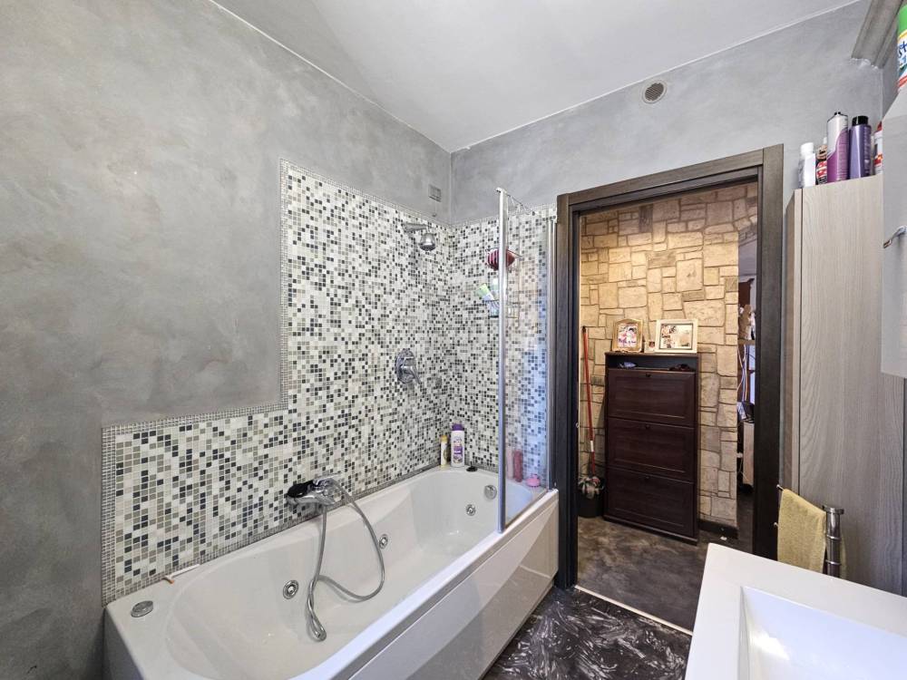 Un disimpegno separa la zona giorno dalla zona notte, composta da una camera matrimoniale, una seconda camera singola di ampia metratura e un bagno ristrutturato con vasca idromassaggio dotata di doccia.