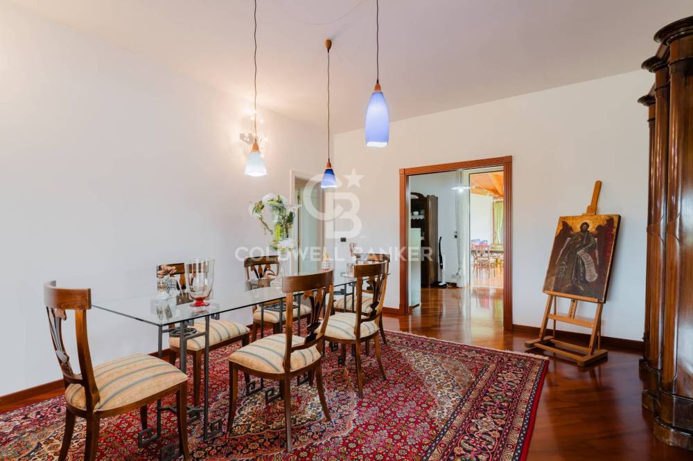 Lingresso apre su un ampio doppio salone luminoso, una cucina in muratura e una zona living con grandi vetrate affacciate sul verde. Una dependance panoramica con accesso diretto al giardino aggiunge un ulteriore spazio ideale per momenti di relax o convivialità.