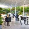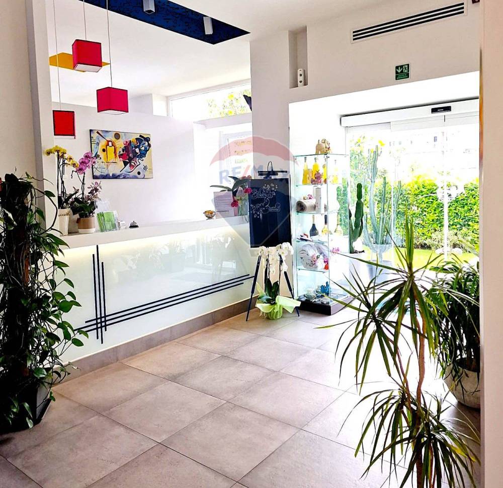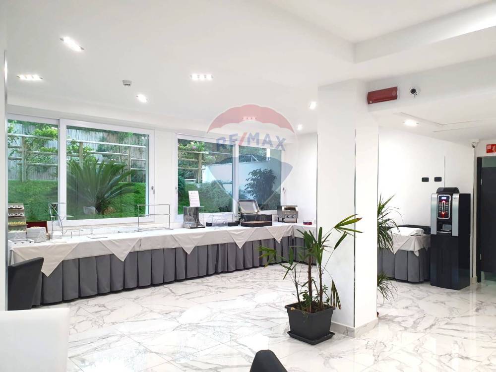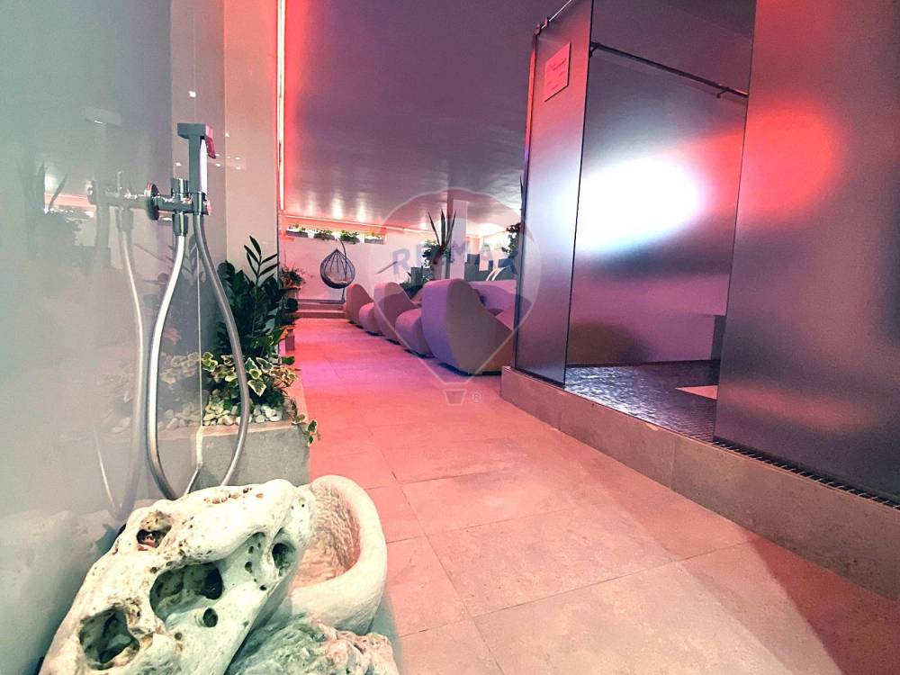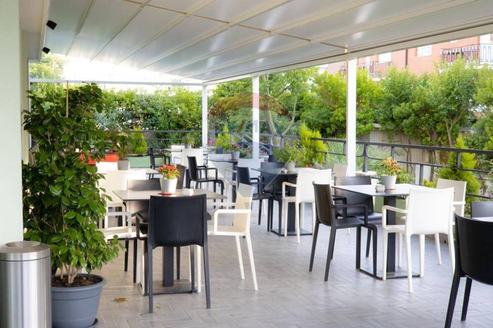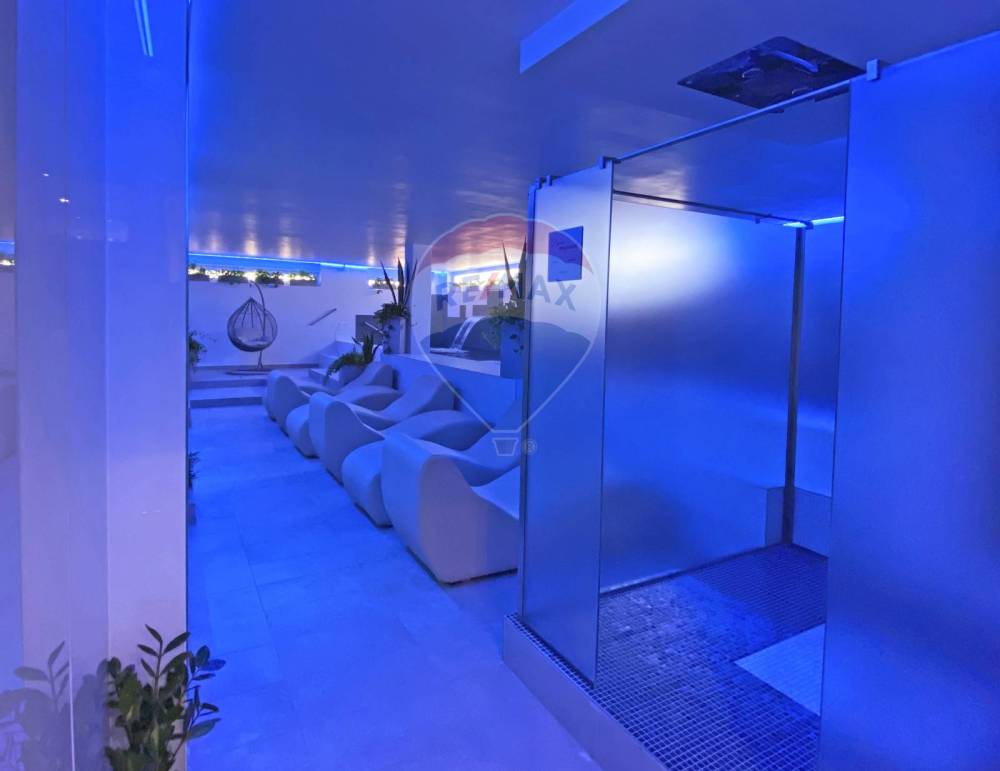 Area Accoglienza (Piano Terra): Elegante Hall con reception in vetro e legno e gestione domotica. Completa di Bar (38 mq) con angolo buffet e una spaziosa Terrazza esterna (130 mq) attrezzata con pergotenda.