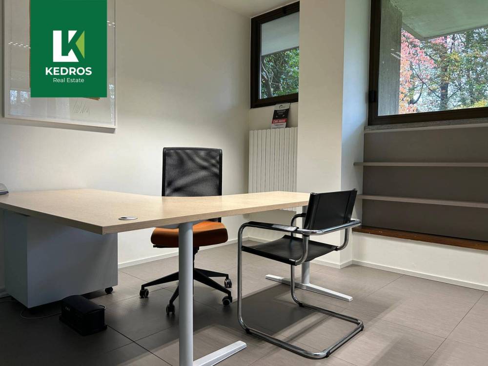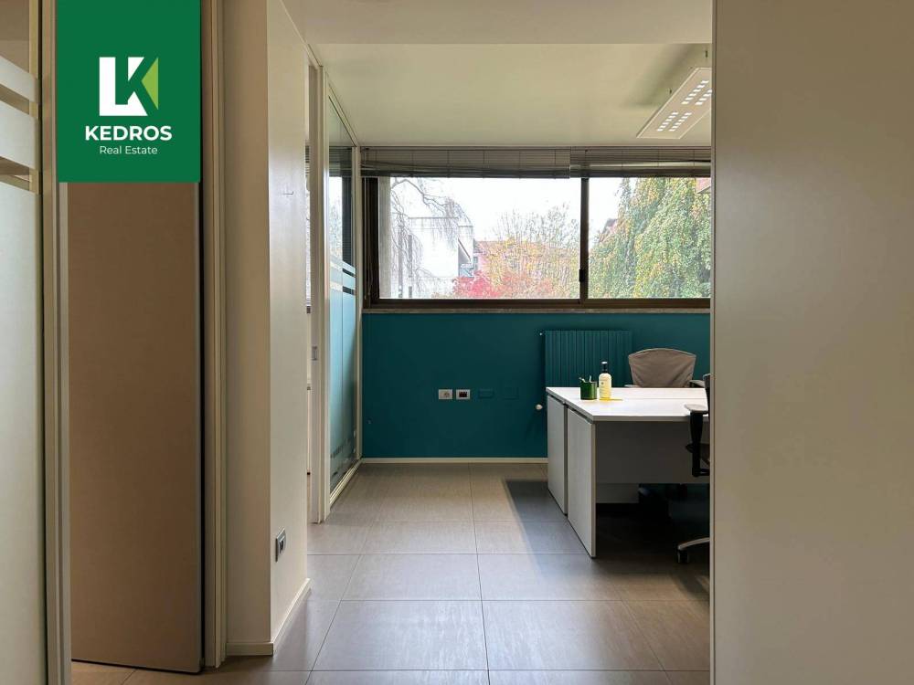 L'unità immobiliare di fatto si compone di quattro ambienti di lavoro che risultano separati con pareti mobili e vetrate per un ambiente professionale oltre ad uno spazio aperto che potrebbe ospitare delle postazioni o essere una sala riunioni.