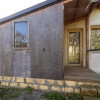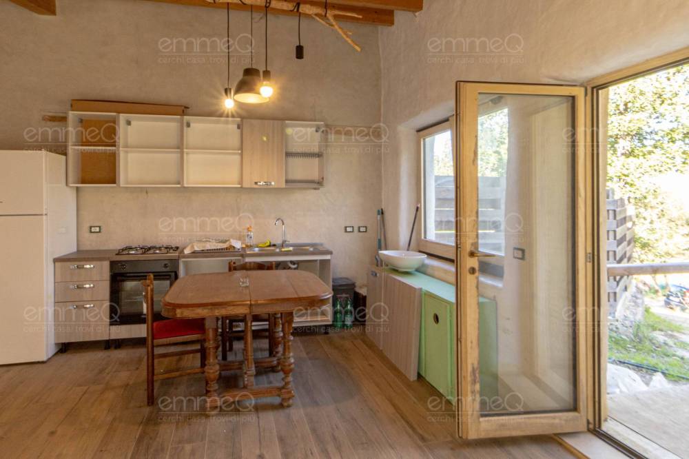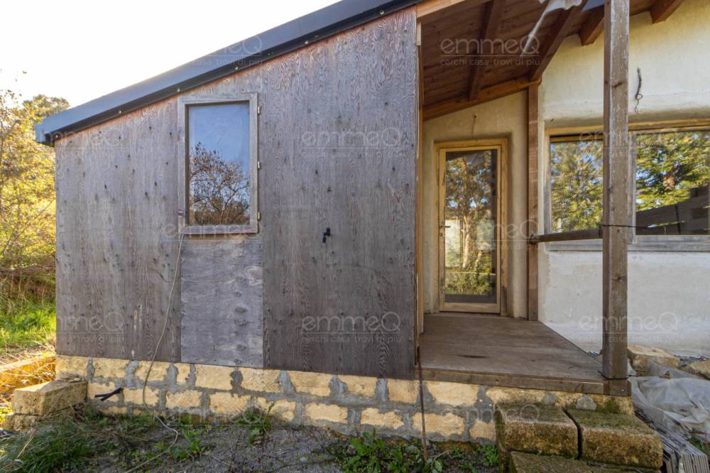 La casa presenta tre uscite esterne, tetto in legno e finiture particolari, con muri realizzati in balle di paglia intonacate, che garantiscono ottimo isolamento termico e sostenibilità ambientale. Le fondamenta sono realizzate con struttura ciclopica in pietra e gabbioni ancorati.