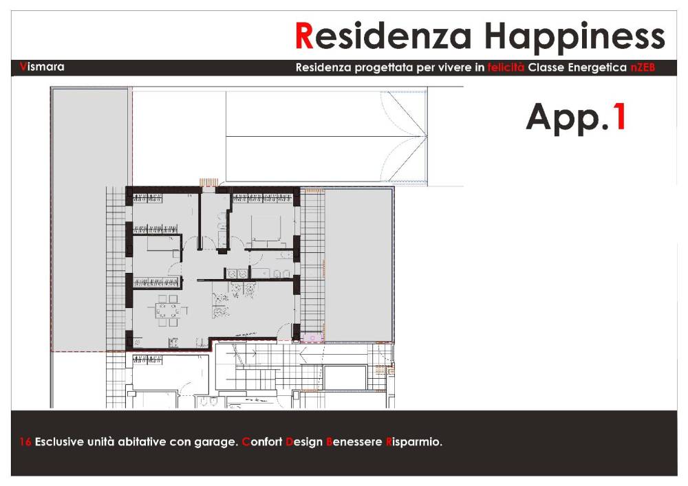 Si accettano prenotazioni per il nuovissimo complesso residenziale (RESIDENZA HAPPINESS) composto da 8 appartamenti moderni, eleganti e confortevoli con prestazioni energetiche di alto livello (Classe energetica nZEB), da mq 90 a mq 100, completano le proprietà giardini esclusivi e/o terrazzi abitabili oltre a GARAGE esclusivi a scelta da 22 mq a 29 mq; dotato di tutti i più moderni impianti, per ottimizzare il risparmio energetico, con riscaldamento a pavimento o pompa di calore, pannelli fotovoltaici privati e ventilazione meccanica controllata (VMC) per garantire il vostro benessere all'interno dell'alloggio! Consegna prevista MARZO 2027.