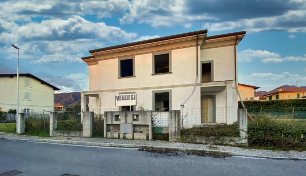 Querceta- Bifamiliare al grezzo composta da ingresso, sala , cucina, 2 camere, 2 bagni, mansarda, taverna, giardino di circa 300 mq. posto auto, prezzo interessante