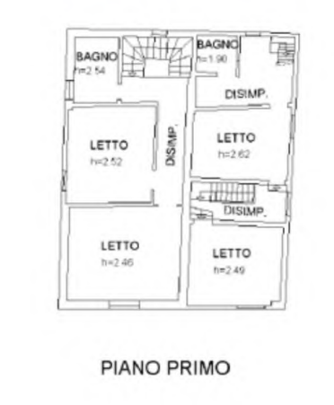 L'immobile presenta con due abitazioni distinte; la prima abitazione è cosi composta: al piano terra, due ingressi di cui uno principale e l'altro di servizio, costituito da pranzo-cucina, soggiorno, studio, antibagno di ampie dimensioni, ripostiglio e scala di collegamento che conduce al secondo piano, ove sono presenti due camere da letto ed un bagno, oltre ad una botola che conduce al sottotetto; la seconda abitazione è cosi composta: al piano terra, è presente un piccolo ingresso con porta blindata, scala che conduce al piano primo, dove è possibile individuare: camera da letto matrimoniale, cucina, disimpegno, bagno.